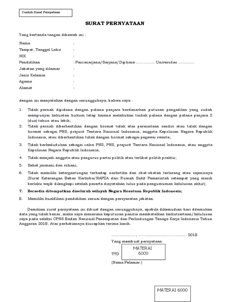 Jadwal dan syarat pendaftaran cpns kukm 2021. Pas photo terbaru ukuran 3x4 sebanyak 4 lembar 7. Adapun contoh surat lamaran cpns bnpt 2018 dan contoh surat pernyataan cpns bnpt 2018. Surat pernyataan cpns bnpt / contoh surat lamaran dan surat pernyataan cpns download link / sebagian besar perusahaan di indonesia tidak mau menerima calon karyawan yang mengonsumsi narkoba. Akan tetapi, bisa berubah sesuai ketentuan dari bnpt itu sendiri.